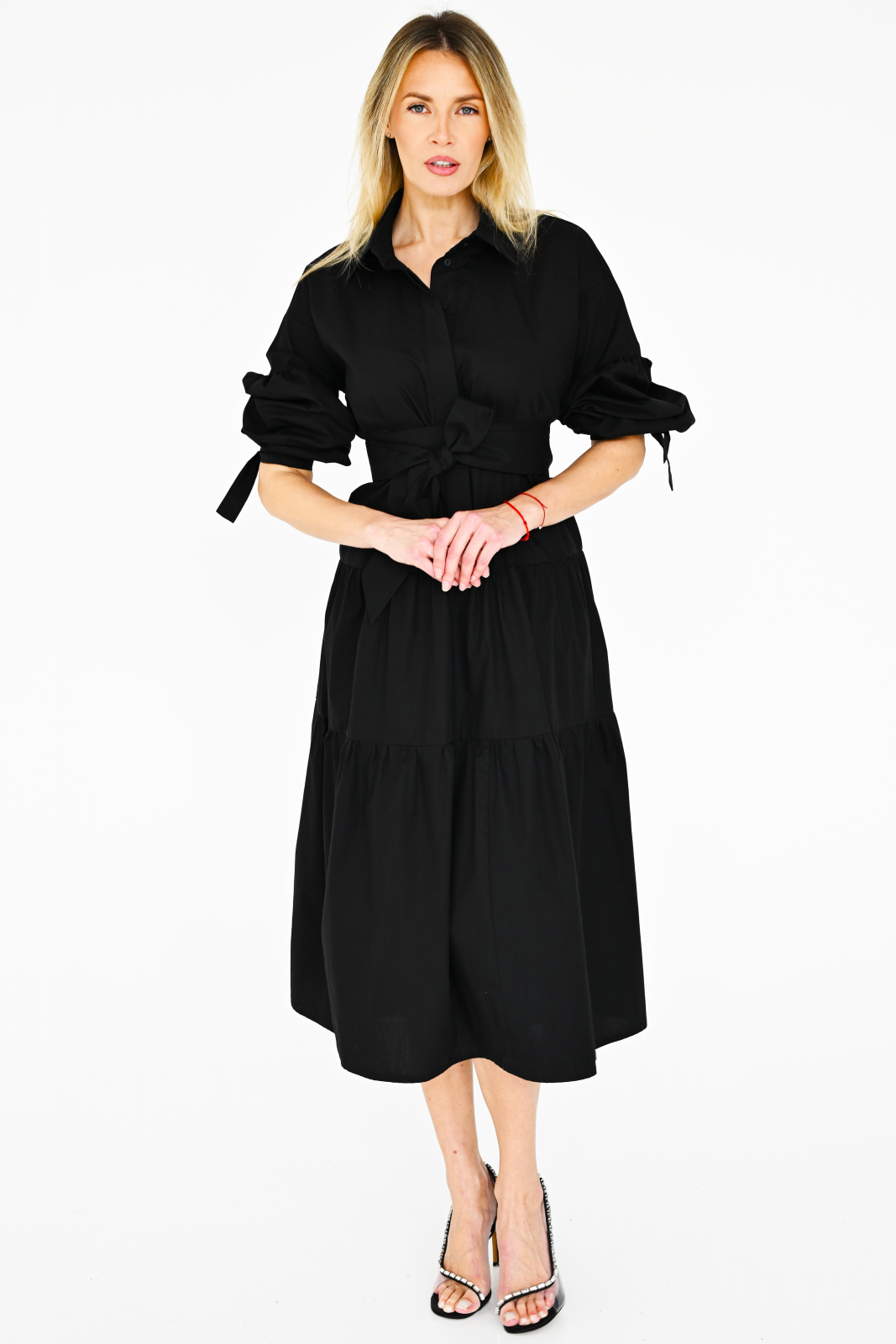 Viena suknelė dėvima kaip keturios skirtingos suknelės jos transformacijų dėka. Ilgos rankovės apačioje susiriša banteliais, tad lengvai galite reguliuoti jų ilgį. Suknelė galite dėvėti ir be diržo, laisvą, ypač karštuoju sezonu norisi laisvumo ir ventiliacijos. Kai norisi ir reikia pasitempti, susijuoskite ją kelis kart prailgintu diržu, ir gausite visai kitą, dailią ir elegantišką marškininio užsegimo viršuje, suknelę. Su ja galite vykti tiek į miesto atostogas, dėvėti kasdienos veikloje, nešioti biure, ar vakaro susitikimuose.