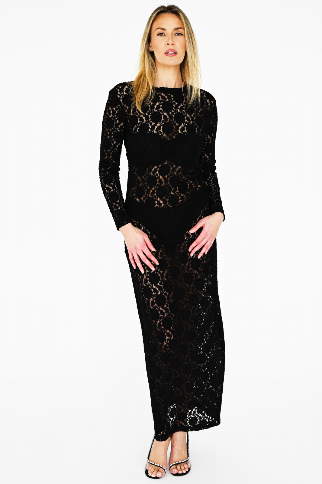Prabangaus standaus gipiūro Maxi suknelė ilgomis rankovėmis, paraukta viename šone, yra labai patogi ir atrodo be galo šarmingai, dėvint ant spec apatinių, body, apatinės suknelės ir ne tik!
