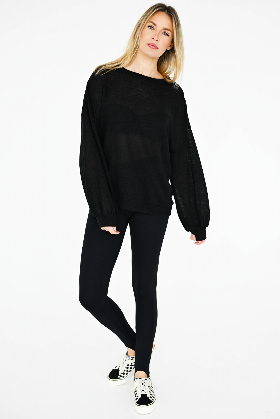 Be galo jaukus, netūralus lengvas megztinis džemperis parauktomis rankovėmis, besibaigiančiomis rankogaliuku. Puikiausiai dera prie tympų, ar ten kur norisi ilgesnės viršutinės dalies, dengiančios klynelį.