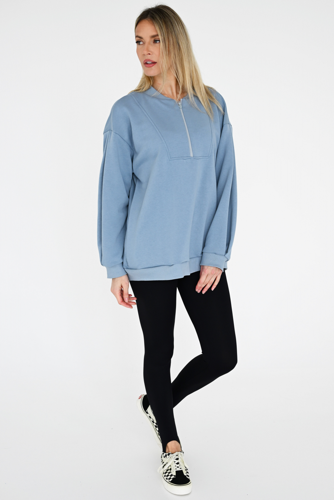 HEDE: Minkšto tampraus trikotažo džemperis su klostuotomis rankovėmis, besibaigiančiomis tampriu mezginiu. Priekis prasisega užtrauktuku, papildomai suteikiant laisvės dėvėjimui ir atsivėsinimui. Yra su kilpelėmis vidinėje pusėje, taigi tinkamas dėvėti visais metų laikais.